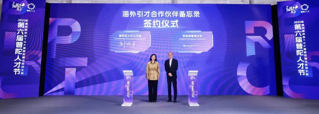 今年以来,在市委人才办、市人才工作局的指导下,普陀区持续发力,不断拓宽海外引才工作网络:7月揭牌成立了“新加坡海外人才工作站”,与中国新加坡商会联合举办“链全球:可持续发展论坛”,开辟了“海聚大赛”新加坡赛事并推荐4名人才进入总决赛,与南洋理工大学开展跨国青年实习,相关工作荣获 “海外拓展奖”。现场,普陀海外“朋友圈”又增加一位生态合作伙伴,普陀区人才工作局与新加坡管理大学签署合作备忘录,将围绕跨境实习实践、人才创新创业、人才交流培养等多个维度开展深度合作,实现国际人才资源与普陀产业发展的互利共赢。