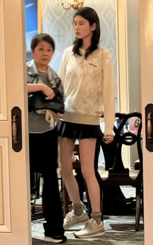 这场三亚之行大家也是不虚此行,没想到奚梦瑶也陪着婆婆四太出席了,这次奚梦瑶中分高马尾,微卷更显温柔,穿着白色长袖搭配黑色裙子,妥妥的乖乖女形象了。婆婆四太比较着急还询问工作人员,而奚梦瑶则全程微笑陪伴着婆婆。