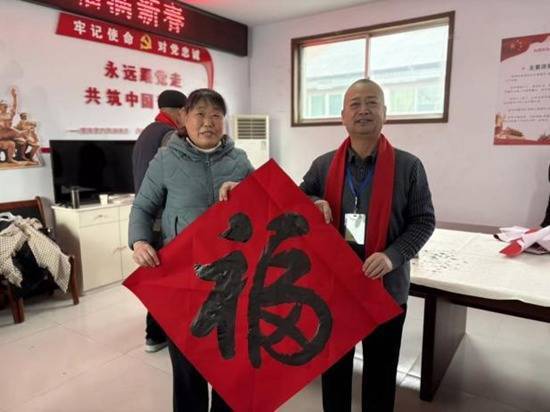 书写现场暖意涌动、笑语盈盈。村民们或静立一旁,专注欣赏老师们行云流水的笔法;或俯身请教,与老师们交流习字心得、探讨书写韵味。一幅幅饱含心意的春联在手中传递,一声声由衷的赞叹在屋内回荡。一位手捧崭新春联的大娘满脸笑意:“今天这活动办得太好啦!跟着老师们学到了不少写字门道,还领到了合心意的春联,心里头热乎乎的!”